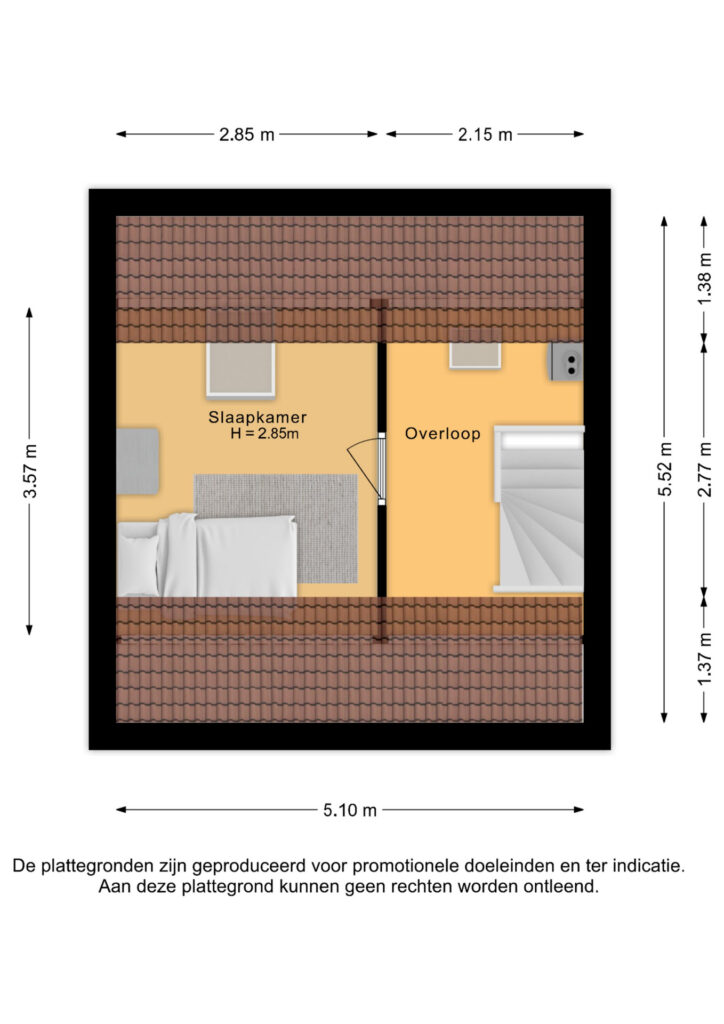 Via een vaste trap kom je op de overloop op de bovenste verdieping. Vanaf deze overloop bereik je de vierde slaapkamer. Deze ruime en sfeervolle zolderkamer is voorzien van een dakraam en biedt volop mogelijkheden. Denk aan een comfortabele hoofdslaapkamer, een tienerkamer, een logeerkamer of een rustige thuiswerkplek. Achter de knieschotten vindt u extra opbergruimte.